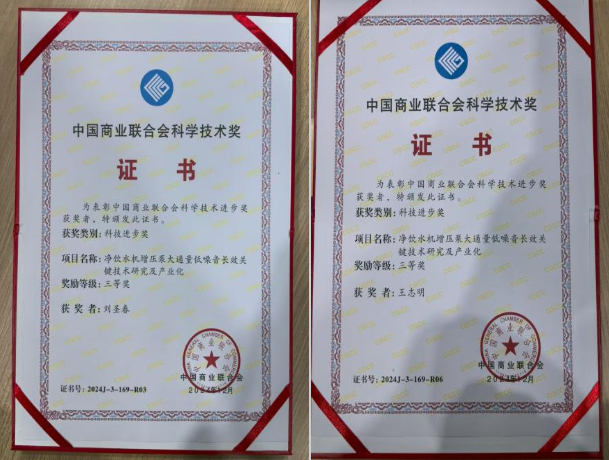 近日,由中国商业联合会主办的2024年度科学技术奖评选结果揭晓,由我校机械工程学院教师刘圣春、王志明联合佛山市顺德区美的洗涤电器制造有限公司等企业共同完成的《净饮水机增压泵大通量低噪音长效关键技术研究及产业化》项目获三等奖。