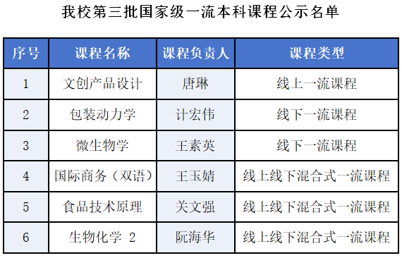 近日,教育部公示了第三批国家级一流本科课程认定结果,我校共计6门课程入选,涵盖线上一流课程1门、线下一流课程2门、线上线下混合式一流课程3门,本次公示我校获批课程数量和类型取得了新的突破,其中《文创产品设计》首次在线上一流课程类型获批,实现了我校国家级五类一流课程全覆盖。