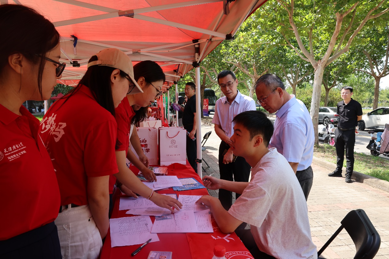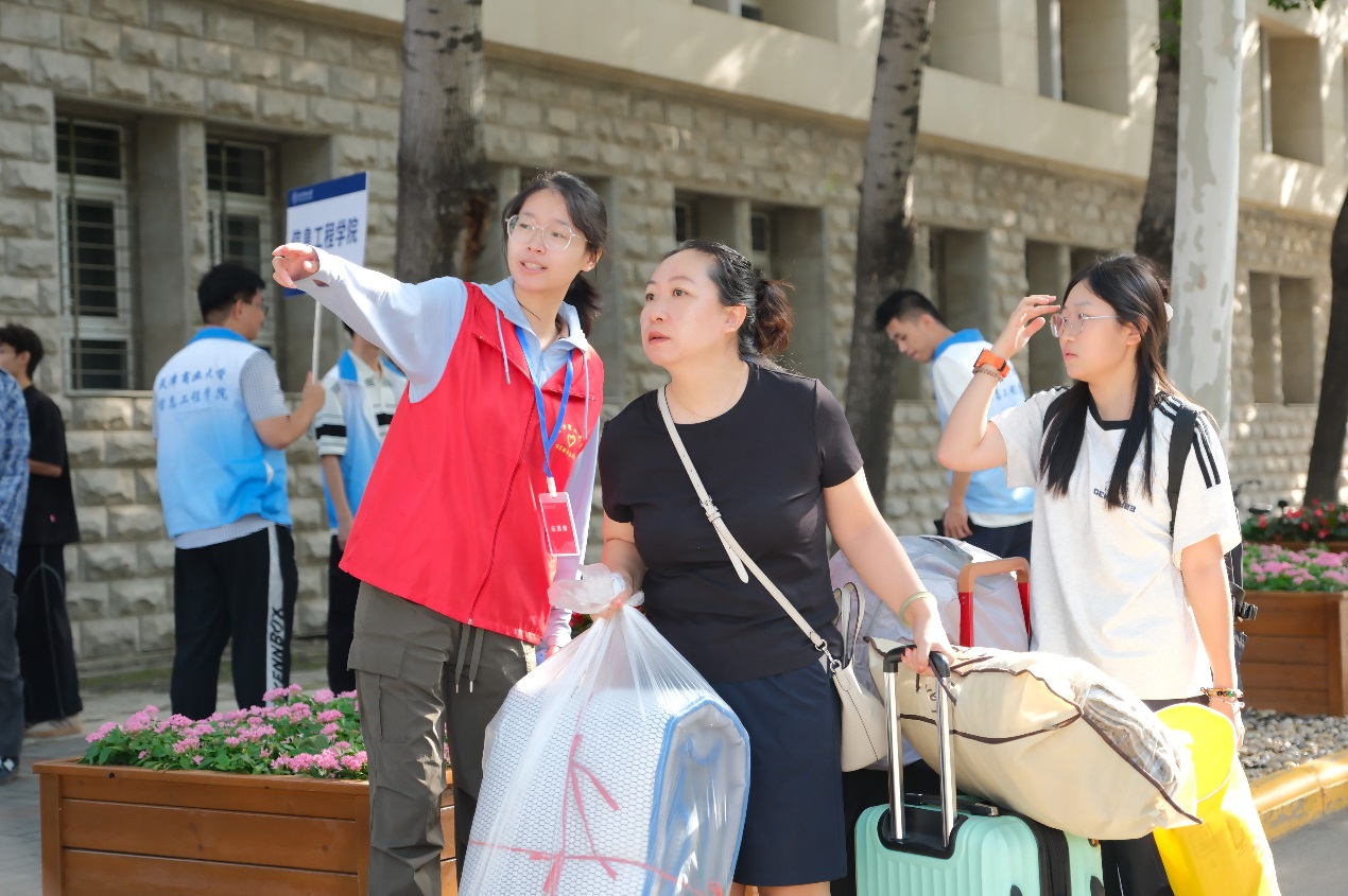 为保障迎新工作高效有序,学校各部门提早谋划、协同发力,以暖心服务迎接每一位天商学子。校团委在“三站一场”安排志愿者接站服务,由志愿者热情周到地将新生安全护送到学校;党委学工部开通本溪路地铁站至集中报到现场的接驳专车,贴心守护新生抵校的“最后一公里”;后勤处准备了美味可口、种类丰富的菜品,以美食传递温暖;保卫处全力做好交通疏导与入校指引,确保报到日校园安全平稳。各学院志愿者也全力投入迎新工作,耐心为新生和家长搬运行李、介绍校园生活,让新生第一时间感受到天商大家庭的温暖与关怀。